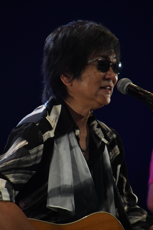 場内の空気まで操るようなセットリストの緩急と、一瞬で声の表情を変えてくる諸岡さん。この展開、いつもながらお見事…! 続くMCでは、大分での初参加から福岡、そして最終日の今日も来てくださった方のこと、 そして今日の日まであちこち走り回ってくださった同級生の皆さんのこと…。 そこから、今回の九州ツアーの契機ともなった宅島建設の金谷さんと幹部の方がステージへ。 "エール"をCMに起用されたきっかけや、これからのことを話してくださいました。ラジオー! 演奏されたのは、もちろん"エール"。 アウトロに響いた"Wow Wow…♪"の声のように、たくさんの応援が広がっていきますように! 勢いを増した音のまま、曲は"凹んでんじゃねえ"へ。 バンドの熱量と、フェイクを交えて少し崩した諸岡さんの歌声の熱が重なり合って、 これはもう一緒に"Keep On"するしかない♪ メンバー、そしてフロアにコールを回し、さらに「拳あげろー!」と生声で煽る諸岡さん。 麿さんのソロも華やかに、最後まで一気に駆け抜けていくようでしたー! 歓声と大きな拍手の波の中、今度は「九十九島の夕陽を思って作った曲を」と"忘れかけた空"。