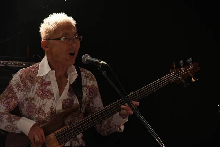 リハ参加者の皆さんには特典としてプレゼント、ということでさっそくフロアのあちこちで黒&赤がひらひらしておりました。 改めての音出しから始まったリハーサル。 内容は参加した方だけのお楽しみですが、リハだけで演った曲があったり 本番と違うアレンジを聴かせてくれた…はずが、仕上がりがよすぎて メンバーの後押しで本番で採用されることになったり、とレアな場面尽くし。 今後もこの企画があるかは分かりませんが、機会があったらお見逃しなく♪ そして再入場のインターバルを経ての本番開演。 "エール"をSEに登場した、本日のメンバーの皆さまは ステージ下手から、恩田直幸(Kb)/住吉中(Ba)/中野周一(Drs)/小南数麿(Gt)。 最後に、白いジャケット姿の諸岡さんがステージへ。 1フレーズ声を乗せたところを恩田さんの音色が一閃して"Lovin'"。 この、一気に歌の世界へと引き込むような入り、つくづくカッコいいんですよねえ…。 続いて、ドラムの重さとキレ、そして全体的に硬めな響きの音が似合っていた2曲目の"アンジェリーナ"。 序盤から熱気たっぷりの諸岡さんの声は、スタンディングしたくなるような勢いと強さ。