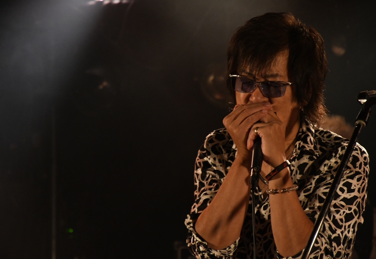 今回も通しのセットリストで、曲間のMCが多め。ここでは、アルバム「秘密基地」のことから、 最初に中さんから送られてきた、という1曲である "泣いてんじゃない"の1フレーズを弾き語りで歌い始める諸岡さん。 途中で中さんがベースを合わせていたのが、何だか「原点」を見せていただいた感じ。 1コーラスで止めてMCに戻り、この曲はCMに起用されていて…と"エール"を。 どこまでもまっすぐに、言葉が正面から伝わってくる応援歌。 その一節に、私もいつもこっそりと(?)力をいただいていたりします。 メンバー、そしてフロアも加わっての"Wow Wow…♪"のコール、パワフルでした!