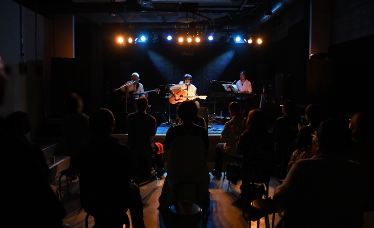 車で名古屋へ向かう道中がYouTubeで生配信…なんていう、ツアーならではの(?)お楽しみもありました。 今回は初めての会場、Sakae Roxx。 …建物内に入ってから迷子になったのは内緒です(笑) 3人が座るステージにライトが当たり、しっとりとピアノで "Estrange"からライブがスタート。 微かな声の揺らぎや響きの変化が際立って感じられるのは アコースティックなこの編成ならでは。 途中に入ったベースソロの切ない(それでもやっぱりイロっぽい)音色に、初手から惹きこまれました…。