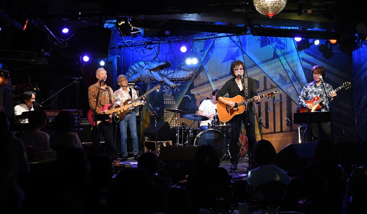 6月の札幌をスタートに、思えばあちこち行きました…のツアー2024"エール"、ファイナル! SEの"エール"にのって、まずはメンバーがステージへ。 今日のメンバーは中野周一(Drs)/小南数麿(Gt)/土方隆行(Gt)/住吉中(Ba)/恩田直幸(Kb)の皆々様。