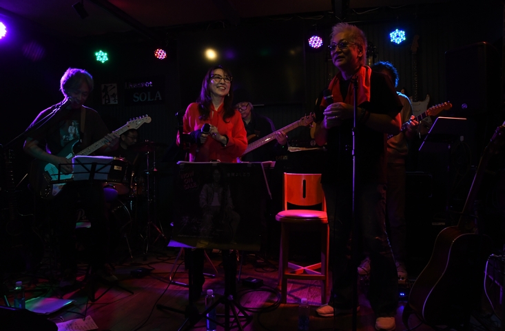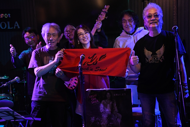須賀川でのラジオ(ウルトラFM)生出演を終え、二本松へと移動しての生誕祭@福島、第2夜。 今回もフロアが声を合わせた「アンコール!」のコールで始まる、YouTube収録からスタート。 松下年見さん、高橋マコトさん、諸岡さんが3人並んでのトークは、昨夜よりもさらに弾みまくり、 「ここは編集でカットしてね!」が多発しておりました(笑) 歌われたのは2曲。マコトさんの"Reach out of the sky"には諸岡さんもハープで参加し、 続いてアコギ1本から入る"今"を、あの日の"音楽魂"から始まった間奏入りアレンジで。