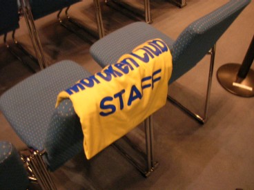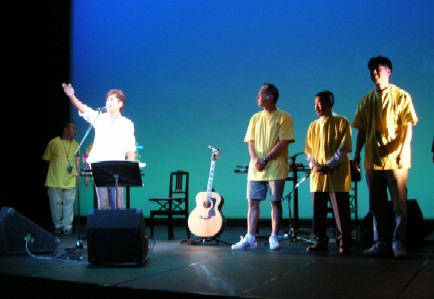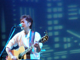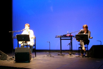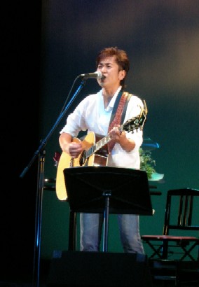 "ENDLESS ROAD 2004 IN SASEBO"と題されたLive。今回開催の立役者、本家Moroken Clubの皆さんは お揃いの黄色いスタッフTシャツ♪ ロビーでは「平和のメッセージ」を色とりどりのリボンに 書くコーナーがあり、たくさんの方が参加されていました。 この日、Moroken Club東京組(?)は本家に押しかけ、 入口でチケもぎetcをお手伝いしておりました。 …ライブ始まるまで、というちゃっかり加減で(笑) ホールはほぼ満席。シンプルなセットのステージに2人が登場、まずは諸岡さんのGtだけで"独り"。 全体が仄暗い中、諸岡さんだけがライトに照らされ、音は鳴っているのに静謐な空気を感じ。 何だろう。いつも以上に、声に惹きこまれる。 まだ1曲目の歌い出しなのに、Gt1本とは思えない強さと静かさが同時に存在していて、 思わず聴きながら深呼吸。