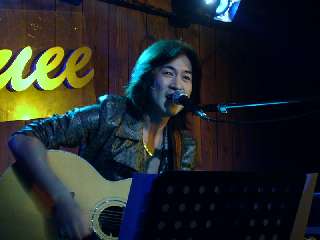 低めのギターの音が、ゆったり、優しくって自然体で気持ちいい(^^)MCで、桑名さんのエピソードに触れたあと、歌ってくれたのは"あん日"。 言葉をね、一つ一つ大事にしている感じがしたんですよね。 いつもそうなんだけど、今日は特に…かな? "戻れない夏"の後には、「俺は、いつも恋してるから!」などという 意味深な??発言も飛び出したりしつつ(笑) いきなり雰囲気を変えたのは、"忘れかけた空"。 聴いてて、痛い!って感じたくらい。声も、表情も、全然違う。 カウント挟んで"君にあいたい"に繋がっていったんだけど、 最初ね、わかんなかった。何か、繋がった一曲みたいな印象を受けたんですよね〜。 …これだから、ライブは気が抜けない!(抜くな(^_^;)) そして、新しくリリースされたCDの告知♪今までに出した4曲が入ったCDだそうで(^^) でも、告知しといて「今日は持ってきてないんで…」…意味ないじゃん…。 (蛇足:「でも俺のHPで買えるんで!」…うちに直リンクしてないから駄目だって(T_T)) どうしたのかな〜(^_^;)って思ったら「トシヤ〜!俺より先に幸せになってくれ〜!」・・・・えーと。 何か、本日の諸岡さん、どこかコワれてオラれたような…なんてことは閑話休題。 ライブ終盤は、"Top to the Mountain" "Comes Rain"と勢いのある2曲が続きました。
