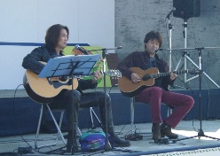 昨年に引き続き、今年も横浜市都筑区の「福祉農園」にご出演でした〜(^o^)丿 ![]() この日のステージには、障害を持った人たちのバンドも出てるのですが、 そのメンバーたちになつかれる??諸岡さんが印象的でした。 昨年同様、σ(^-^)はイベントスタッフしてたため、曲目がないのですが よく晴れて気持ちのいいお天気の中、30分ほどのライブとなりました。 そんな中、"ずっと"を歌ってるシーンが 何故か アタマに焼きついて離れないのです。 諸岡さん、トシヤさん 今年も 心よくイベントにご出演いただき、本当にありがとうございました! ![]() ←Back to Live Report Menu |