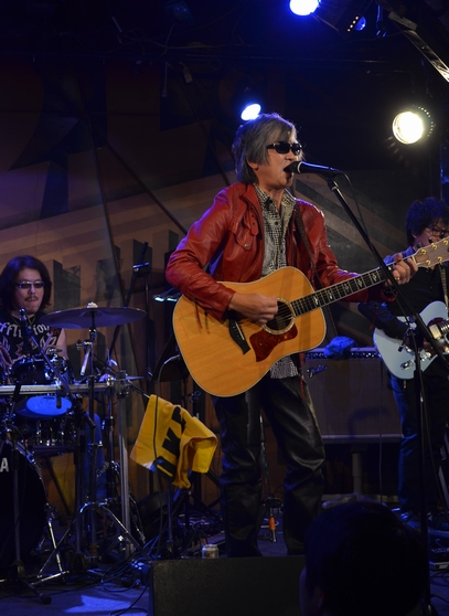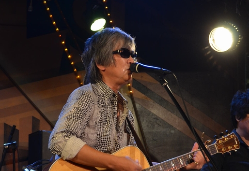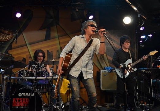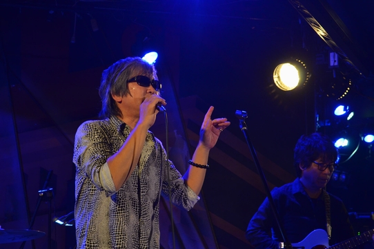なのでお似合いの赤いレザーJK、見れたのはこれ1曲という短さでした…。続いてはHand Clapに乗せてアコギを爪弾き、"風の中のストーリー"へ。 合間合間に聴こえてくる土方さんのギターが気持ちよくって。 河野さんのコーラスも相まって、いつもより柔らかく感じた"風スト"でした。 "Love you〜♪"って歌いつつ、さりげなーくピッて指さす諸岡さんが素敵(*ノノ) 1曲目が熱すぎたのか??諸岡さん、すごい汗。タオルが大活躍(笑) MCでも「暑いから涼しい曲を…」と次の曲にいくかと思いきや、 ここで改めて土方さんをご紹介。サンミュージック繋がりであるのだそうで…。 当時のアルバムから、と"Breezing Blue"…Liveでは約10年ぶりじゃないかな。 岡本さんのカウントで、土方さんのGtを前面に。アレンジはほぼ原曲、な感じ? で、今日(も)諸岡さんの声、やたら響きが艶っぽくてですねー♪ そして間奏のKeyのソロ&終盤からのアレンジ!もう、すっかり聴き惚れ状態。 「完璧なギターですね!」と満面の笑みの諸岡さん。 今日はこれを作詞された有森さんがいらしてるそうで、この曲だけ歌詞カンペを 用意した…けど見えなかった!のだそうですがー。 …さっきも思ったけど、間違えても顔に(舌も)出しちゃダメだってば(笑) MCでは、これがアルバム"All Of My Love"からの1曲ということ+CMソングな話題で繋がり、 中村勘九郎さん(当時)が出演されたCMで、といえば、これまた久しぶりなあの曲なわけですが。 このあたりから(?)話は脱線しはじめ、そして河野さんへの無茶振り…に、クールでフラットな切り返しにあい。 いつもの調子になってきたなー、と何故か安心するファンも約1名。 でも最後には、「俺の夢の隣には、みんながいるから!」と見事にまとめて、"夢の隣に"。 ドラムのカウントから入ったイントロは、歌い出し直前でピアノだけに変わり、それまでじっと一点を見上げていた諸岡さんが どこか柔らかくて優しい響きの声で歌を音に乗せ…大好きなこの曲、もう、どっぷり浸って聴いてました。 でもどーして最後の歌詞、あっちにしちゃうんですかあああ>< や、いいんだけど。アリなんだけど。 原曲聴いたことない人に、あれが本来の歌詞だって思われたら切ない(/_<。) そして、間違えても顔に出しちゃ(以下略) ![]() 次の曲はー、と一瞬?詰まって、「お母さんの歌!」と"Mother"へ。 イントロでの土方さんのフレーズがとっても印象的でした。 さらさらと流れる、河野さんのピアノにもうっとり。 そしていつにも増して、諸岡さんの声が強くって…心に響きました。 そのままアコギを鳴らしつつ、35年くらい前に長崎から出てきて…と 呟くように言葉を紡いで"少年"のフェイク。 そこに土方さんが音を絡ませ、バンドが加わり…一気に音が厚くなる フルメンバーだからこそ、のアレンジ。 声と音の強さで、すごい緊張感というか…張りつめた空気。 息苦しささえ感じるほどの熱さ。最初に聴いた頃を思い出してました。 「一部最後の曲を、TAK斉藤に」…このフリはアレですよね。"体より心が"。TAKさん、すっかり鉄板ネタ要員。 ひとたび音が鳴り始めると凄いのに、どうしてMCだとこうなんだろう(・・。)ゞと思いつつ、それが楽しくて仕方ないー。 諸岡さんの声、色っぽい♪そしてそれよりさらに、TAKさんのベースの音がイロっぽー♪ 今日、すごい見やすいとこだったのもあって、気が付くとTAKさんの右手をガン見してました(笑) 諸岡さんはアコギを抱えてるものの、あんまり弾かずに手でも歌いまくっていて、自然に体が揺れますコレ。