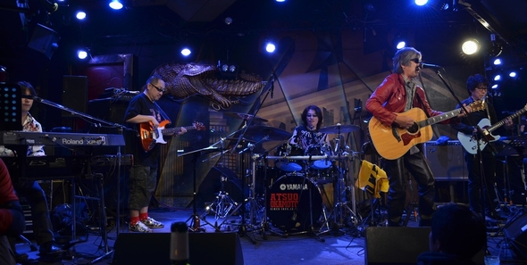 1年数か月ぶり、のクロコLive! ここ1か月ほど裏でゴソゴソやってたので、なおさら楽しみにしていたこの日。 今回のメンバーは、お馴染みの岡本郭男さん(Drs)&TAK斉藤さん(B)&河野啓三さん(Kb)に加え、 お初な土方隆行さん(Gt)…と言えば、あの曲のレコーディングに参加されてた方ではないですかー♪ Liveで滅多に聴けないあの曲、これはもしや♪と期待はふくらむばかり、でした。 ![]() そしたらやっぱり河野さんが半分死角だった(・・。)ゞ …のでまずは全景をどどーんと。 BGMと入れ替わるような諸岡さんの歌声からLiveがスタート。 "Lovin'"、アコギ1つで渋く歌いあげた1フレーズ。強めのリバーブの余韻が響いたところで 「やるぞー!」のシャウトから全員の音が一気に。ちょっと重めで、歌声と合わさると何ともオトナ。 土方さんのGtは、派手すぎなくて深い音。そしてサビのとこのベースがカッコよくて(*ノノ) ラスト、諸岡さんはくるりとターンを決め…たのはいいけど、ギターのシールドが抜けちゃってました(笑) 歌詞…はともかく、最初からこんなにheat upしちゃっていいの!?と思ったら、案の定「あっつー!!」と早々に上着をオフ。