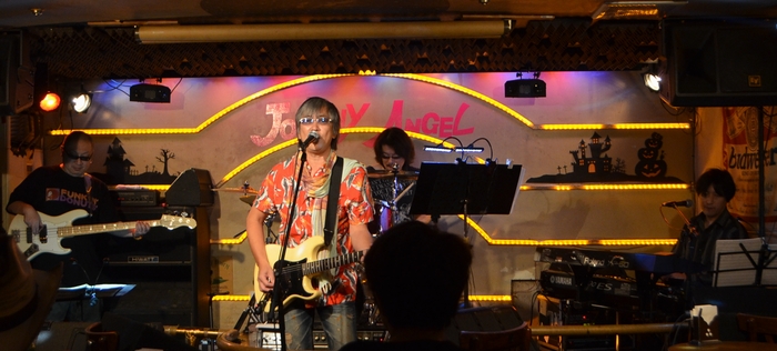 初参加のJOHNNY ANGEL。しばしスピーカーの位置やら何やらを見定めつつ、ココかなー、と着席。 ここのステージ、ドラムだけ少し高くなってるけど、客席とフラットなんですね。 ![]() 本日のメンバー、河野啓三(Key)/Tak斉藤(Ba)/岡本郭男(Dr)の皆さま。 諸岡さんが立つとおぼしきエリアにはEGが1本だけ。あれ、今日アコギなし?と思ったところで 後方から客席の合間を縫ってメンバーの皆さまがステージへ。距離感近すぎ(笑) BGMと入れ替わるように、岡本さんのドラムと河野さんのイントロからの"Lovin"でライブがスタート。 いつもより少しゆっくりのテンポ、そして重めの音。 ![]() でもそれだけじゃない空気感の違いは、音の響き方のせい? ギタリストさんが入らない構成の時、パートを担うのは河野さん。 同じフレーズを弾いても、Keyならではのどこか滑らかな音色に タイトなドラムと響きまくるベース。そして、サビでちょっと捻りを入れた諸岡さんの声。 1曲目から早くも「今日来てよかった!」と思わせてくれました。 さらっとMCを挟んで、"風の中のストーリー"は諸岡さんのギターから。 何やらアドリブで歌い出し…からの"Clap your hand!"とカウントでイントロへ。 歌いながらもニコニコしてて、えらい楽しそう。もちろん、音もとってもご機嫌で。 私はと言えば、途中から(毎度のことながら)ベースばっかり追っかけてました(笑) サビの途中で、少し高めの音が入るのがツボでした。こーいうポイント、大好き。 MCでは、来年あたりライブレコーディングしようと思って…なんて嬉しい話題が。 今から楽しみにしてますよー。オンラインストア、準備は完了してますからね! 続いての"SIGNAL"は、最近の定番?ギター爪弾きながらの歌い出し。 いつにも増して、伸びる声の後味(というのだろうか…)が艶っぽい♪ そこに岡本さんがカウントを重ねて、Keyとベースが加わった…のはいいけれど、 ボーカルマイクだけ音が弱い?…サビにかかる頃には大丈夫になったので気のせいかも。 柔らかなメロディの中に、硬めな響きのスネア。そしてKeyの音数が多くて、聴きごたえたっぷり。 いいなーコレ。今日、この曲の印象が少し変わったかも。 そして、歌詞に出てくる「嘘」という言葉から、次の曲のタイトルまで話題を繋げたMC、お見事でした。 諸岡さんも客席も笑ってたけど…自分の心に、って深いよね。 続く"夢の隣に"。キーを変えました!とカポ付けた諸岡さん。 今日、リハーサルで変えたのだとか。それでさらっと出来ちゃうのが流石ですよねえ。