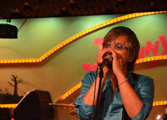 特に曲終盤のベース!!も、カッコよすぎでしょ。そして何故か諸岡さん、Takさんだけをメンバー紹介して第一部が終了。 第二部は「弾けていきますか!」と岡本さんをコール、からの"With"でスタート。 重めのテンポで、初っ端から熱いー♪で、途中でTakさんのスラップ! 思わず、今日このままベースだけ見てよかな、なんてヨコシマしたのは内緒(笑) ちゃんとしっかりがっつり、諸岡さんを追っかけておりますとも。 1か所だけ、メロ変えて歌ってましたよね?(ね、ちゃんと聴いてますって) メンバー紹介では、お互いの名前の響きを音で弾く皆さまたち。 ひとしきり釣りの話をしつつ、海繋がりで"Breezing Blue"。 「マジシャン!」なんて呼ばれてましたけど、河野さんのKey、ほんと魔法のハコ。 間奏では、ポッケから久しぶりにブルースハープ登場。最近では珍しい? そしてラストフレーズ、少しハスキーな響きでぐーっと伸びていく声。 "Heart〜"もだけど、この歌も「今」の諸岡さんが聴かせてくれる声が好きかも。 MCは毎度の(?)トシの話題。…岡本さん、可愛いなぁ(失礼) 人になんて言われても、やりたいと思ったらやっといた方がいいよね、と諸岡さん。 …うん、そのとおり。決めるのは自分なんだもんね。 "君の愛に"は、まずピアノだけで。そこに抑えたベースとドラムが加わり、その音が少しずつ強くなっていき。 その中を、諸岡さんの声が真っ直ぐに貫いている感じ。歌い方は優しいのに、不思議なほど強いんだよね。 何とも言えずいい表情をしていて、聴きながら色んなこと思い出してました。走馬灯みたいに。