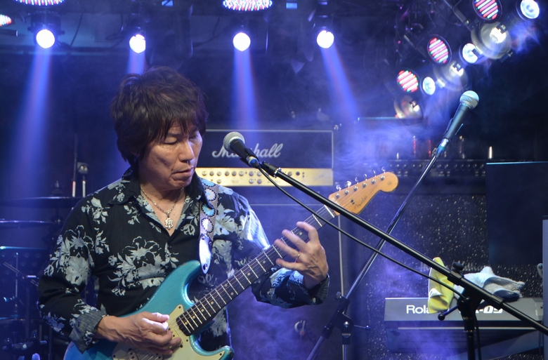 最初の間奏のソロはJun-Bohさん、2巡目に土方さん。同じ曲のソロなのに、見せる景色が全然違う。んー、なんて贅沢! そのまま続けて"アンジェリーナ"のイントロをかき鳴らす諸岡さん。 アドリブで歌うは"2人が譜面を換える間を繋ぐ♪"的な歌詞(笑) スコアが整ったタイミングでカウント、そして高いトーンのGtから 少し粗さを加えた声が入ってくるところ、気持ちよかったー♪ Wギターの音の厚み、そして土方さんの響かせる低音がカッコいい! このカッコよさと、MCのギャップがクセになるんですよねえ…。 "人生これから"って歌を、と"Lonely Sniper"…へ??と思ったら 即座に"違うだろ"と自己ツッコミをされておられました(笑) アコギの音に、差し込まれる土方さんのGt。あ、これも化けてる。 全体的に低め、歪み強めの音がとにかくカッコいい。サビの土方さんのChoも、雰囲気を醸してて大ハマリ! 間奏から2ndに入るあたり、Jun-Bohさんのバッキングに土方さんが弾きあげる音が重なって、圧倒されましたー。