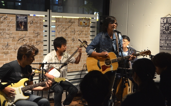 第一部は、津軽三味線のルーツや造作などのお話をたっぷりと盛り込んだお話と初めて間近で聴く、頭の中に直接響いてくるような力強い音色に惹きこまれました。 黒澤さんの仰っていた、"三味線は打楽器"という意味がわかったような気がします。 インターバルを挟んだ第二部では、スペインをイメージしたというオリジナル曲や 伊勢神宮の倭姫宮奉祝行事で奉納された1曲など、三味線の音と印象の多彩さに驚き! 思わず神社&古代日本史好きの血が騒ぐお話もたくさん聞けて、楽しかったー♪ そして、諸岡さんと小暮さんが加わっての"忘れかけた空"。 アコギ&EG&Keyにプラス三味線、ってどういう響きになるの?と思ってたのですよ。 三味線ってフレットレスじゃないですか。他の音の中で、どんな揺らぎをするんだろうって。 かなりの音の厚みの中、競り合わず、でも鳴り負けない、「確かにそこに在る」音色。 時に軽やかに、時に鋭い響きが不思議なほど歌にハマっていて…初めての感覚ですコレ。 三者三様のソロも凄かったー! もう1曲、"Cocoroの翼"も黒澤さんと一緒に。1音加わると、雰囲気変わりますね。 最後は、東日本大震災の復興応援曲"雲漢"…五所川原市の立佞武多に書かれている言葉で CDの音源には、東北の皆さんのかけ声が入っているのだとか。 黒澤さんの先導で、同じ「ヤッテマーレ!ヤッテマーレ!」のかけ声をみんなで。 ![]() 普段はあまり聴くことのない和楽器の音色。 そして滅多に見られないセッション、堪能させていただきました! ←Back to Live Report Menu |