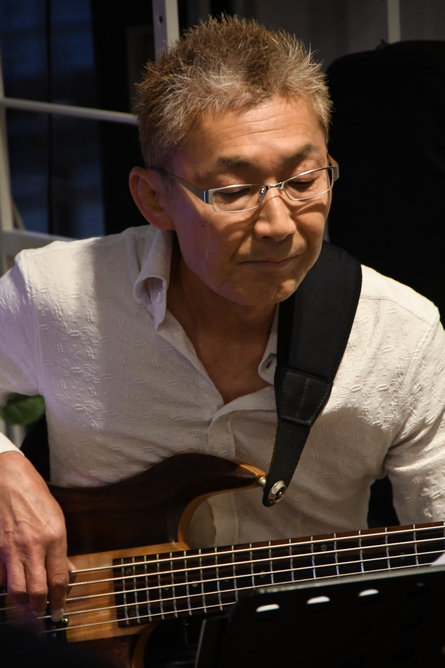 そして、今日はサプライズがたくさん!第一部の諸岡さんは1人でのライブ…という触れ込みだったのですが、 噂の??住吉 中さんがベーシストとしてご出演! ずっと水面下で進められてきた、新アルバムの重要人物♪ レコーディングのチラ見せ配信で拝見したりしていたものの、 まさか今のタイミングでお会いできるとは思わず…。 そして、手にされていたのは5弦ベース♪ 始まる前からワクワクドキドキが止まらない状態でした(笑)