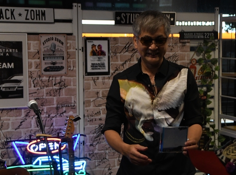 1曲目には諸岡さん、中さんと一緒に"Cocoroの翼"を。視聴対象を限定しての同時配信をされていたようで、 フロアでもスマホの配信とステージを交互に見ていたり、 配信にメッセージを書き込んでいたりする方も。 これもまた、今ならではの新しい楽しみ方なのかもしれません。 息子さんに宛てた…という、諸岡さん作曲の"Daddy"。 そして娘さんへの曲、"GIFT"。 カバーも素敵だけれど、オリジナルのこの2曲が印象的でした♪ アンコールでは、デビュー50周年を迎えられたシェリーさんへ、 諸岡さんからサプライズの花束を! 人や歌、そして音。色々な新しい出会いと、最高の音に包まれた素敵な一夜となりました。 今日もこの場に立ち会うことができて幸せでした。ありがとうございました! ←Back to Live Report Menu |