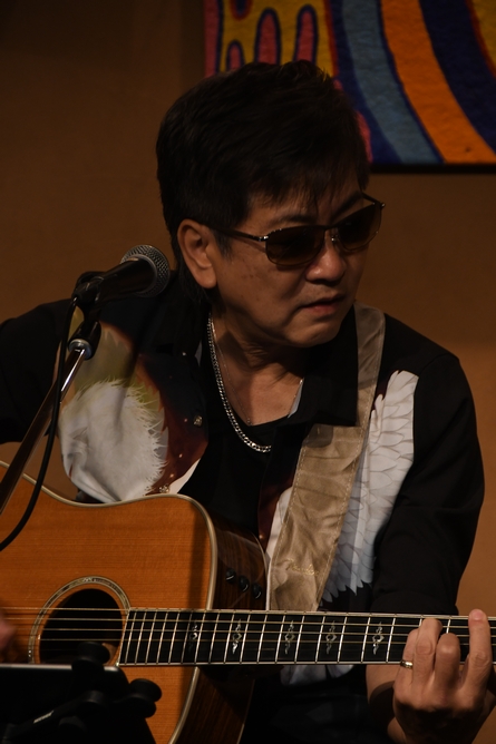 ライブの生配信がスタート!普段、ライブの本番は、配信はもちろんのこと 動画撮影も(Official以外は)不可、な諸岡さん。 一瞬アレ、って顔されてましたから、少々サプライズな要素だったのかもしれません(笑 YouTubeライブの視聴者の中には、新たに諸岡さんを知った、という方もいらしたはず! "体より心が"、"アンジェリーナ"と、ギターが映える2曲を続けて。 アルバムのアレンジを活かして、それでもやっぱり弾く人が変わると音も空気感も違う♪ 画面越し、配信で同時に色々な場所の方たちと同じ時間に繋がっている楽しみもあれば、 床や壁からの微かな振動、人の動きが生み出す空気の流れ、そして何よりも音の「熱」。 そんな、ライブならではの「ナマ」の醍醐味もある…イマドキな時間を味わいました。 そして"Cocoroの翼"では、声の出せないフロアが一緒に歌えない分(?) キクチさん、HIDEKI'Nさんに突然歌わせ(笑)、"明日に向かって♪"をリピート。 最後のフレーズから"忘れかけた空"に繋がったところ、熱かったですねー!