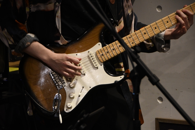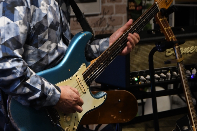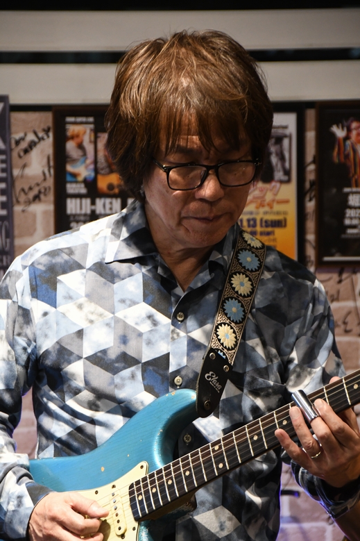 第二部の冒頭は、父子鷹の2人がステージへ。まずはオリジナルのインスト、"STORM RIDE"。 重なって、離れて、追って、そしてまた重なって… そんな2本のギターの音が本当に気持ちいい! 曲終わりのお2人の笑顔も最高でした♪ そこへ、ニコニコと拍手していた諸岡さんが 「"父子鷹"プロデューサーの諸岡です」と登場(笑) 新アルバムから、土方さん&理久音くんがレコーディングに参加された1曲、"Lady"を。 理久音くんのイントロに、諸岡さんのアコギと土方さんのリードが入るアレンジ。この感じ、好きかも! アルバムでも印象的だった、メインのフレーズは土方さん。3本のギターの、それぞれ異なる響きがあまりにも気持ちよくて。