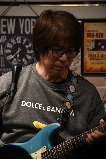 そのまま突入した第二部は、土方さん&理久音くんがステージへ。まずは理久音くん。 数年前に作ったという、なんとギターでスラップ!な1曲。音も弾く姿もCool♪ 続いて、フロアからの「お父さん!」の声を「お父さんはですねえ…」と受けた土方さん。 1月に逝った巨星、Jeff Beckの"Cause We've Ended as Lovers"…"哀しみの恋人達"。 あまりにも有名なこの曲ですが、目の前で聴く"泣き"の音色は圧巻の一言。 支えるように低音部を合わせる理久音くん、音色はもちろん、目線や表情も素敵でした! そしてお馴染みとなった"STORM RIDE"、今回はオケなしの2人だけでトライ!と。 颯爽と2本のギターが…と思ったら、土方さんが「お父さん、間違えました」(笑) ばっちりとリトライ。オケなしとは思えないほどの迫力、疾走感がカッコいい! たっぷりと"父子鷹"を堪能したところで、フロアで楽しんでいた諸岡さんもステージへ。 諸岡さん、と言えばRod。Jeff BeckとRodが揃えば…あの曲しかないですよね♪ "People Get Ready"、もう、ハマらないわけがない。 何とも楽しそうに、そして気持ちよさそうに歌う諸岡さん、聴いているこちらも最高の気分。 All you need is faith / This time I'm ready.ここで、今日聴けたことに感謝を。 さあ、ともに歌おう!と始まったのは、まさかのCarol King / "You've Got a Friend"。諸岡さんの歌で聴く日が来るとは…! 土方さんもボーカルを取って、ラストは2人でかけ合いのように "You've Got〜"とリフレイン。 そこから、土方さんと理久音くんがアイコンタクトでカウント。そして鳴り響くイントロだけですでに涙目です>< こんなに「まさかの」な選曲が続くライブ、初めてかもしれません。