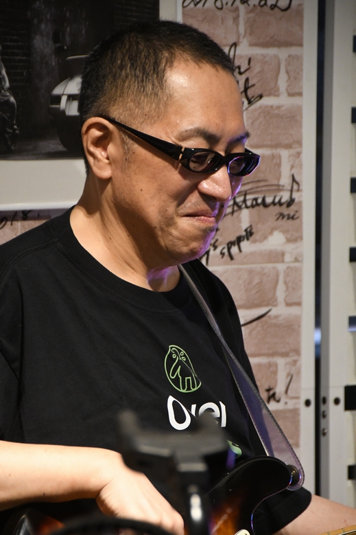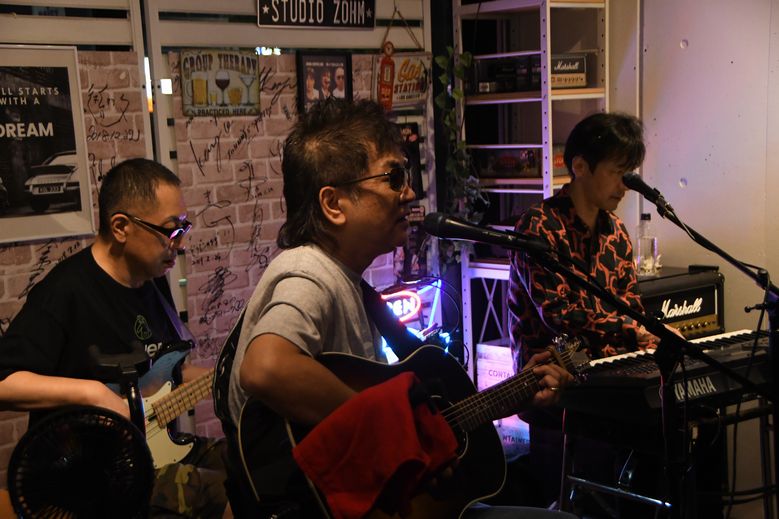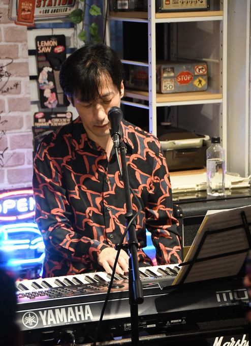 こちらZOHMが明大前に移転されて、初の「三人衆」ライブが行われるはずだった、2019年2月。 急遽の事態に、「気持ちは3人で…!」と、諸岡さんとTakさん2人でのステージとなった日。 数年の時を経て、"三人衆"ライブが同じZOHMで復活となりました。 他の場所では何度か拝見していたものの、やっぱり発祥の地(?)で堪能しなくては…♪ ![]() すっと一息吸い込んで、アコギをかき鳴らしながら "♪愛しておくれよ…河野啓三〜!"と歌い出した諸岡さん。 "Lovin'"での開幕、ひと声めから、なんて熱い声! そこから、「3人で」いきます!の一言を挟んでイントロへ。 鳴り響く鮮やかな音色、そしてこのタッチ。 聴いた瞬間、ああ、これ啓三さんの音だ…!と感激です>< 少し重めのテンポが逆に熱さを生み出していて、 その熱は「歌って!」と煽る諸岡さんとそれに応えるフロアで加速し、間奏のKeyソロで1つめのピークに。