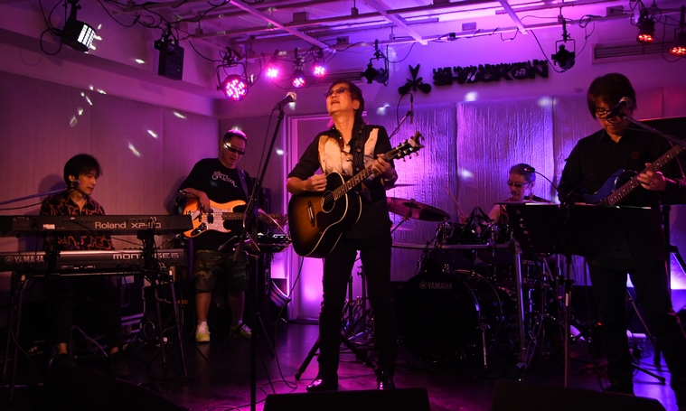 それだけで鳥肌が立つほどの音圧、さすがの迫力。その中を突き抜けてくる諸岡さんの声は、高く低く、 いい意味での湿った艶めきで、音との相性が最高! 一気に空気が染まったところで、"戻れない夏"へ。 少し早めのテンポが意外にも気持ちいい温度感でした。 これ、こんな風にも化ける曲なんですねー♪ 歌終わりには、本日のメンバー紹介。 土方さん、Takさん、河野さん、そして岡本さん。 この4人が揃ってのLiveは、実に4年ぶりなのだとか。 MCでは、数日前に終わったばかりの九州ツアーのことを色々と話されていたのですが、 「1つ1つ、思い出を作りながら…」という一言と、ふわりとした微笑みがとっても印象的でした…。