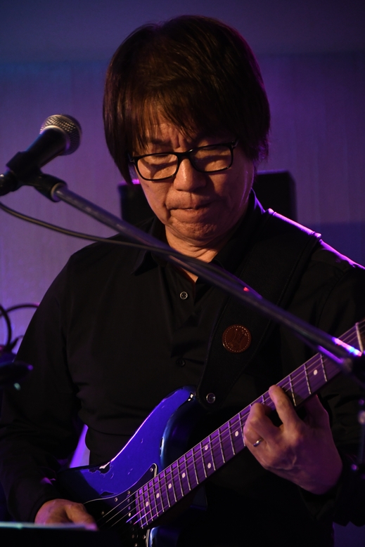 そして、土方さんのスライドギターをfeatureしての"空"。アルバムの中で好きな(秘密基地は別格)上位2曲が続けて! もー、感涙モノです。 あの日にに見上げた空、かの地で広がっていた空…。 歌に浸りながら、そんなことを思い返しておりました。 音の余韻が残る中、少し長めのMCでは先日の佐世保の話を。 言葉は歌へと繋がり、静かにKeyを重ねて"今"。 そこはかとなく翳りを秘めた響きがアレンジに似合っていて 柔らかなベースと相まって、歌声を包んでいるようでした。 再びMCを挟んで、"Love Me tender"で曲調一転。 しゃらん、と軽くアコギを鳴らしてサビの1フレーズ、そしてカウントでイントロに移る頃には フロアからも笑顔と手拍子が♪ ハンドサインと一緒に、いつも皆さんの笑顔を生み出す1曲になりましたねー! 「後半戦入ります!」の一声に応えて、まずは土方さんのギターが炸裂したのは"アンジェリーナ"。
