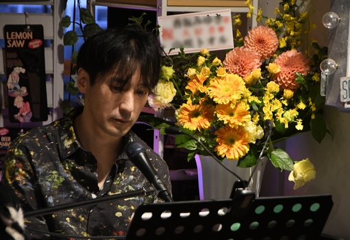 優しくつぶやくような歌い出しと、そこに重なる柔らかなピアノ。絞り込まれた手数の音が歌声をくっきりと浮かび上がらせ、 その響きの深さに思わず目を閉じて聴き入っておりました。 途中、ふわりと入ったストリングス系の音色がとっても綺麗で…。 音と声が重なった後に、一瞬の静寂のようなピアノだけで奏でるラスサビ。 そこで、マイクから少し離れた素の歌声に感涙。ほんと、いつもながらなんて声なのー! 余韻を味わうような拍手の後は、再びのMC。 先日、目標だった「年内にチャンネル登録1,000人」を達成したYouTubeの話題から、 カウントを入れての"Breezing Blue"。 今回の啓三さん、前回よりも音色の展開が多彩で、ピッチベンドもいい感じに効いていて、音たちを耳で追うのが楽しい♪ この曲では、原曲の印象的な間奏のブラスセクションを見事に奏でてくださいました。