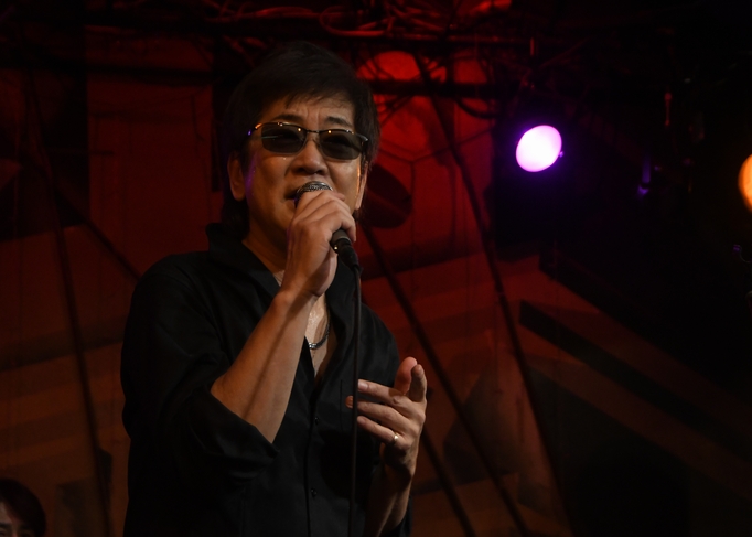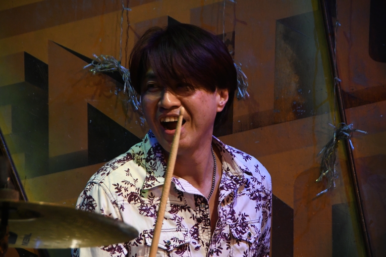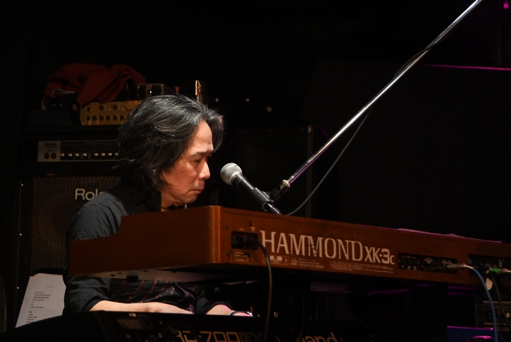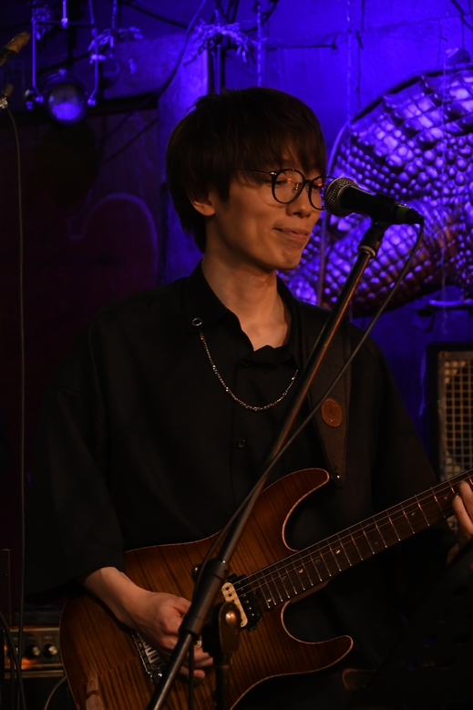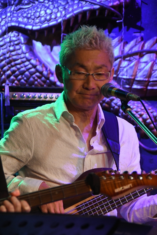 ひとしきり回したところで、諸岡さんのカウントからイントロへ。明るめのアレンジとコーラスワークがいい感じ♪ 続くMCでは、改めて本日のツインギター、土方さん父子をご紹介。 理久音さん、CROCODILEのステージは今回のライブがデビューなのだとか。 そんなお2人のギターをfeatureしての次の曲は"Breezing Blue"。 2本のギター&アコギのハーモニーはもちろんのこと、恩田さんの奏でるKeyが何とも綺麗で、 大好きな、間奏でリズムが変調するところ、今日の音たちで聴くことができて幸せです…。 暑くなったのか、ここでギターを置いて上着を脱いだ諸岡さん。 そのままハンドマイクで、恩田さんのピアノに乗せて"今"を。ん−、いい声! 語彙力も何もあったもんじゃない表現ですが、本当にその一言に尽きるのですよ。 "あるがままのこの時を…♪"の「を」の響きの深さといったら、これがもう特筆モノで…と、 我ながらマニアックだと思います、はい。でもこういうのが聴き取れる楽しさもライブならでは! そして、2コーラスから入ってきた中さんのベースのイロっぽいこと。