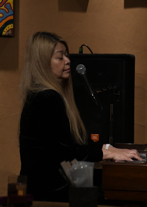 MCを挟んで、"風の中のストーリー"でふんわりと和んだところで「1曲目は河合塾のCMで、同じころに憂歌団も河合塾やっていて…」と 話す諸岡さんに、フロアから「今、ここの隣でやってるよ」との声が。 S.O.Ra.さんの隣は、なんばHatch。そちらで、憂歌団の木村充輝さんの 古稀をお祝いする、ミュージシャンが集まっての2daysなのだとか。 そんなお話から、桑名正博さんの話題へ。 ここの店内には、桑名さんのポスターやフライヤーがたくさんあって 「ここにいると、マサヤンが見てくれているようで…」と"あの日"を。 桑名さんとも何度か共演されている浜崎さん、この曲も一緒に演奏されたことがあるそうで まさかの1曲に聴き入りながら、ラストの1フレーズでの遠い視線に、先日の久留米での一幕を 思い返し、時間と空間を越えて、"同じ"場に在る奇跡を目の当たりにできて幸せでした…。 歌い終わった諸岡さんも、九州のライブでこの曲を歌ったら感極まってしまって…と話を繋ぎ、 今日の空も、ここS.O.Ra.も…と"空"へ。 途中、アコギをたたいて一瞬入ったブレイクと、どこまでも深く、高く響く歌声に、 きっと"あの日"の空とも繋がっている…そんな気持ちを抱いた今日の"空"でした。 そして、第一部最後の曲は、語りかけてくるように、いつにも増して優しい声で"ずっと"。