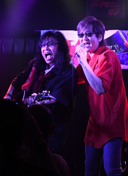 諸岡さんは客席におりてマイクをあちこちに差し出し、このあたりからフロアはさらに一体に。そして、オリジナル版でも諸岡さんがゲストボーカルで参加されている"魔法のシグナル"は 今回の主催、「熱血正義」のオーナー、マミー様♪がステージに参加! 何と、一晩で覚えてきてくださったそうです♪ 曲の途中、フロアから小森まなみさんの大ファンの方が飛び入り、という場面も。 諸岡さんが入れたラストのフェイク、原版とおんなじで内心「おー♪」と思っておりました。 ステージもフロアも一体となった、普段のライブとは一味も二味も違う濃密な時間。 これはもう一緒に楽しんじゃえー!ということで、しっかり「ゼーット!」叫んできました(笑) 終盤は、質問コーナー(という名のトーク)を挟んで、ガンダムシンガーが2人揃えば…の4連発。 Vガンダムの2曲は動画&拡散OKというスペシャルタイム。 それにしても、どの曲も諸岡さんが歌うとやっぱり諸岡さんになる、というのを改めて実感。 トークもたっぷり、寄り道もたっぷり、笑顔もたっぷり、そして裏話??もたっぷり。 集まった皆さんの「好き」の熱量も含めて、同じ時間をめいっぱい楽しませていただきました!
