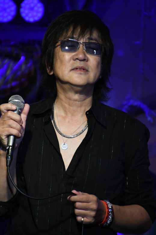 間奏のツインギターに、アウトロの土方さんのソロも圧巻!そして力強いアコギから始まる"凹んでんじゃねえ"。 そこに麿さんの音が重なり、続いて土方さんの音色g加わり。 低めの響きと変則的なリズムが生み出す音の緩急が絶妙で、 同じフレーズでもアプローチがそれぞれ違っていて。 3本が重なると、こんなに太さのある展開になるんですね。 諸岡さんはフロアに"Keep On!!"のコールを煽りつつ、 メンバーの皆さんにも1人ずつ振って歌わせていくのですが それぞれ声にも歌い方にも個性があって楽しい♪ (でも、周ちゃんだけ振られていなかったような…?) ひとしきりの後、諸岡さんの「土方さんのギター!」の一言から 一気にソロタイムに突入! 土方さんの少し驚いたような表情、もしかして(いつもの)予定外の流れだったのでしょうか(笑) ソロは恩田さん、そして麿さんへと続き、その後は土方さん&麿さんが交互に弾きあうというツインギターの魅力たっぷり。