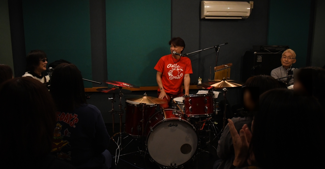 今回は諸岡さんのライブ…ではなく、ドラムの周ちゃん、こと中野周一さんの還暦イベント"60Shu Groove"にゲスト出演♪ 申込開始早々に満員御礼となり、入れ替え制の2回公演の形で開催されました。 ![]() たっぷりと生音のドラムを交えてのトークタイムの後、 諸岡さん・中さん・恩田さんが加わってのミニライブ。 演奏されたのは4〜5曲…だったでしょうか。 …実は今回、完全にスタッフで入らせていただいていたので 歌はもちろん、中の様子すらほぼ見ていないのでした(笑) 集まったファンの皆さんの笑顔やこぼれる会話の数々、 普段はなかなかできない経験あれこれソレコレ。 ぜんぶまとめて、楽しかったです♪ 中野さん、改めて還暦おめでとうございます! ←Back to Live Report Menu |