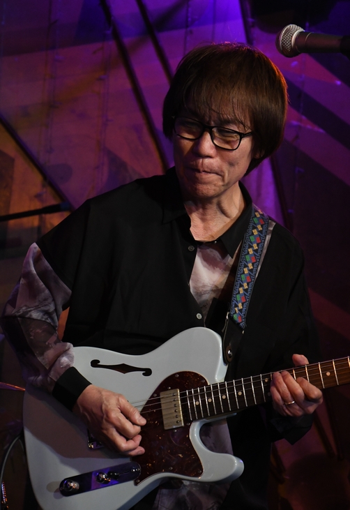 そして開幕。メンバーの皆さん、続いて諸岡さんが登場し…あれ、今日は中さんが座ってる。 SEと入れ替わりに、麿さんの鋭い音色が場内を一閃して "体より心が"でライブがスタート。 少し粗めに掠れさせた歌声がこの曲に何とも似合っていて、 迫力のサウンドと相まって初手から絶品! 麿さんの音はもちろんのこと、Aメロのバックに聴こえる 土方さんのフレーズがめちゃめちゃ渋カッコいいのですよ。 そして終盤で諸岡さんが放った、ひと息のフェイクが鮮烈でした。 歌終わりの"Thank You!"の一声に周ちゃんがカウントを繋いで "Breezing Blue"のイントロへ。 土方さんの弾くメインと、麿さんのカッティングが合わさる響き、 そして今日もしっとりイロっぽい中さんのベース♪ "コーラスもできるギタリスト"との呼び声も高き(?)麿さんへ、 ハイトーーーーーンの"Feeling〜♪"を手で促す諸岡さんと 「!?」という表情で応える麿さんが見モノ聴きモノでした(笑) 間奏の恩田さんのフレーズ、そこからの土方さんのソロと、広く高く伸びる諸岡さんの声の重なりが最高! 最後はアウトロのギターの音色が何とも気持ちよく、心に風を感じた1曲でした。