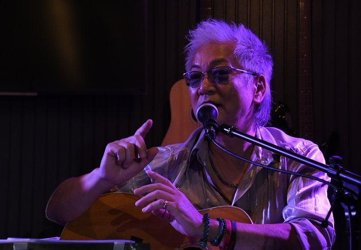 須賀川でのラジオ(ウルトラFM)生出演を終え、二本松へと移動しての生誕祭@福島、第2夜。 今回もフロアが声を合わせた「アンコール!」のコールで始まる、YouTube収録からスタート。 松下年見さん、高橋マコトさん、諸岡さんが3人並んでのトークは、昨夜よりもさらに弾みまくり、 「ここは編集でカットしてね!」が多発しておりました(笑) 歌われたのは2曲。マコトさんの"Reach out of the sky"には諸岡さんもハープで参加し、 続いてアコギ1本から入る"今"を、あの日の"音楽魂"から始まった間奏入りアレンジで。