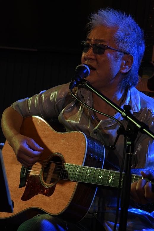 「…"愛してる"というのがありまして」と弾き出したのは、お馴染みのあのフレーズ。昨夜はやっていない曲なので、今日のフロアの皆さんはほぼ初体験!なのですよね。 ちら、と向けられた視線。はい、もちろんばっちりお応えしますとも♪ 伊達に、昨年のツアーから各所でひとり愛を叫び続けてきたわけではございません(笑) ステージにもフロアにも笑顔がたくさん咲いたところで、一転しての"忘れかけた空"。 アコギに乗せて、いつもと少し違うメロで歌い出す諸岡さん。この入り方、初めてかも。 "…強くいきたい"の歌い語りで締めてイントロへ。 歌い方も、いい意味での勢いと崩し加減がいつもとまた違っていたような。 そしてやっぱり、なんとも楽しそう! 途中、フェイク入れつつ松下さんをコールしてステージへ招き入れ、 マコトさんのソロもたっぷり加えて、音も声も最高潮!に盛り上がったところで ライブ前半、諸岡さんのステージが終了となりました。 後半は、松下さんの歌う"Riverside My Hometown"(By 金尾よしろう)からスタート。 ラジオでもよく聴いていたこの曲。 詞やメロが、心の中にある「故郷」への想いと繋がるようで大好きな1曲なのです。 続いて、ご自身のエピソードを交えて"われとわが身を眠らす子守唄"(By 美空ひばり)をしっとりと聴かせてくださいました。