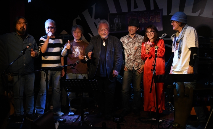 ここで本編が終わり…と思いきや、顔を出されていた菊池俊介さんをフロアからコール!諸岡さんが自分のアコギを渡し、5人でのトークから即興での1曲♪ 最初の一音からBLUES全開の"Sweet Home Chicago"! ギターの妙と歌声を味わいつつ、笑いながら"エア"ハープをかます諸岡さんも拝めました(笑) 大きな拍手は、そのままアンコールへ。 松下さんの「あれ、やりましょう!」の先導で、お馴染み"不良中年のススメ"。 メインボーカルを振られた諸岡さん、歌詞がアヤシイようで色々とモニャムニャしつつ、 フロアも一緒に声を合わせて、最後まで笑顔に包まれた本日のライブが幕となりました。 今夜の出会いも、金尾さんの繋いでくださったたくさんのご縁のひとつ。 きっかけは色々あれど、同じ場所で、同じ時間を過ごせた幸せに感謝です! ![]() ←Back to Live Report Menu |