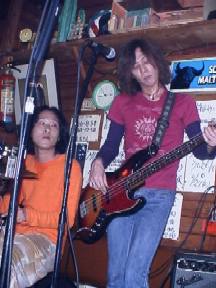 歌い出しの歌詞に、"青い煙草のけむり…" っていう言葉があるんですが、 それをそのまま地でいくように Toshiyaさんの咥えた煙草のけむりが 青いライトに吸いこまれるように見えて すっごく綺麗でした。 ちょっと、呆然としながら聴いてました。 終了後、ハシゴ組6名は撤収作業中のお2人を 振り返ることもなく(笑)次のライブ会場へ急行! その甲斐あって??8時半には到着。マローネは、Dynamixのライブでまさに盛り上がってるまっ最中♪♪ オリジナル曲はもちろん、何とDaisukeさんの歌う"All Of My Love"まで聞けました〜(笑)