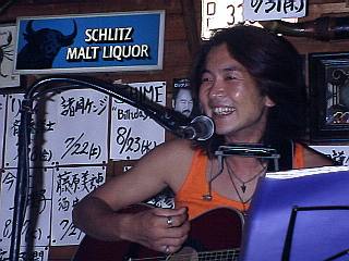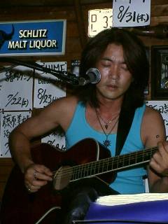 「うだるような暑さ」ってのは こういうコトを言うのかな・・・ってほどの暑さ!! 久々の土曜日のライブってことで、少し早めに到着した私。店の外でリハ聞いてたんだけど も、だーらだら汗かいて。おかげでビールがんまかった(笑) 一ヶ月ぶりの諸岡さん、何となく…いや、かなりしっかりと(笑)日焼けしてました。 だから明るい色のタンクが良く映えてたなぁ♪(それが例え***円のやつだとしても…(笑)) 一曲目はToshiyaさんのギターをメインにした"北の国から"の中の曲をインストで。 ドラマの再放送、結構感動しながら見てたので、断片的に場面がアタマの中に浮かんだりして。 ![]() "Hi Lonesome Town"から、アルペジオが続いたんだけど それが何とも言えずキレイだった・・・。 曲の方は意表をついて??そのまま"Dedicated To"へ。 歌ってる表情がすっごく優しくて…なんか、ちょっと遠い目でね。 時間そのものが、ゆっくり ゆっくり流れていくような感じ。 諸岡さんの故郷、佐世保にはまだ行ったことがないんだけど 懐かしいような気持ちにさせてくれるところ。 この歌では、そんな風景がいつもココロに浮かびます。 それは、本当の佐世保の風景とは全然違うものかもしれないけど 同じく海の近くに生まれた私の原風景なのかもしれません・・・。 ここで、今日初めてのMC♪ 「今日のMCはToshiyaにまかせた!」と何度も言う諸岡さんでしたが、実情はちっともまかせてませんでしたぁ〜(笑)