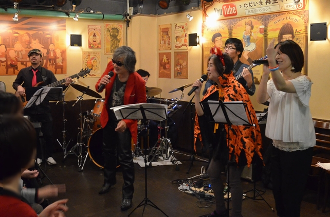 今日はいつものLiveとは一味違って、イベントでのミニライブ+α。 何のイベントかって…諸岡さんが"JACK BITES"としてOP&ED、それに挿入歌やサントラ曲まで 担当されていた「機甲警察メタルジャック」なるアニメのファン主催イベント! Jack Bites。日詰さんからの繋がりで、私がナマ諸岡さんを初見したのがココからなので、 まさかそこから26年も経って、こんな機会に立ち会えるとは…なかなかに感慨深いですねー。 ![]() 同作品で主要キャラクターの声を担当されていた、 声優でもありシンガーでもある、まるたまりさんもご出演。 そして当時のメタルジャック曲を生バンドで!ということで 本日のバンドメンバーの皆さま。 手島友信(Gt)/小倉諭史(Ba)/中川千穂美(Key)/三浦良介(Dr)/ 星野こよみ、轟一騎(Cho)というフル構成。 店内は30人ほどのキャパ、それでも立ち見が出るほどの大盛況! 開場待ちの間に漏れ聞こえてくるリハの音で、すでに気持ちが 盛り上がっていた方もいたようです♪ 何というか、客席の期待感がすごい。 物販ブースから店内を眺めつつ、この作品がいかに愛されているかを ひしひしと感じていました。皆さんすごい!。 まずは出演者全員がステージへ。諸岡さんは珍しく赤いジャケット。これ、もしかしてあのPVの時の? コーラスも務める星野さんの進行で、Liveは"Just Dream On"でスタート。 諸岡さんの"Just Dream On!!"と迫力の一声からイントロへ。そして"Jack On!!"ともう一声。…も、熱いです! 原曲を忠実になぞっているので耳馴染みのいいアレンジ。でも、諸岡さんの声はさらに円熟してますからねー♪