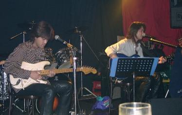 Toshiyaさん、サビのコーラスの高音部もちゃんと入れてたし♪何より、パーティに参加してた人が何人か、 ステージの方に向き直って、じ〜っと聴いてたんですよね。 伝わってるんだぁ・・って、ちょっと嬉しくなってしまいました。 そして、ちょっと長めのインターバルを挟んで第二部。 パーティがハケて、少し店内が落ち着いた・・・かな? 第二部の1曲めは、ToshiyaさんのAGのフレーズが おなじみになってきた"MARIA"。 音が盛り上がっていったところで、そのまま2曲めへ。 "Top to the Mountain"だったんだけど 聴いてる私のテンションが低いからか、今ひとつ勢いというか 強さというか 弱かったような。 (・・・でも やっぱり客席がうるさかっただけかも(^_^;)) Toshiyaさんのボーカルで"太陽が歌ってた"。 後半、転調っぽく入ったりして、すご〜く余裕持って歌ってるような 感じがするんですよね〜♪<Toshiyaさん